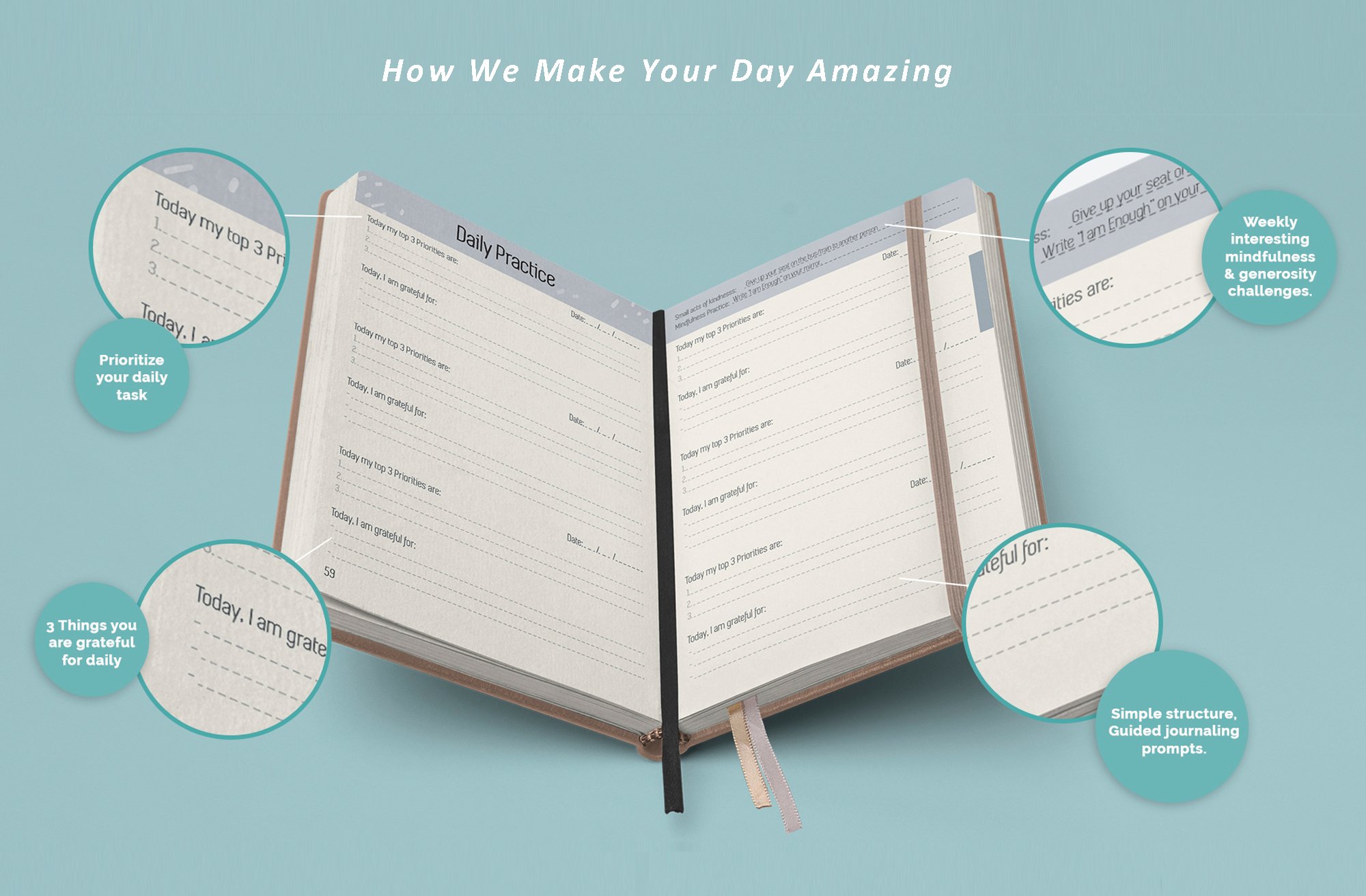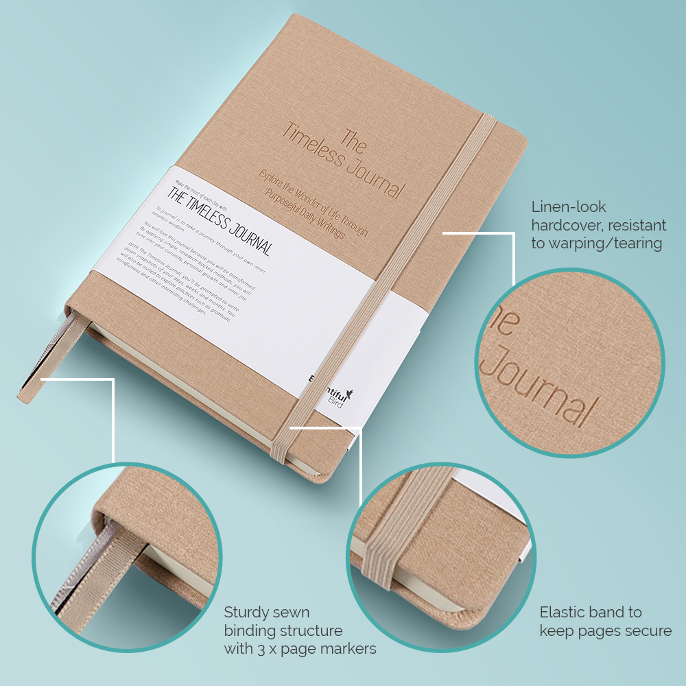 The Timeless Journal delivers researched backed, guided format to help you harness the Power of Gratitude, Curiosity, Generosity and Mindfulness.