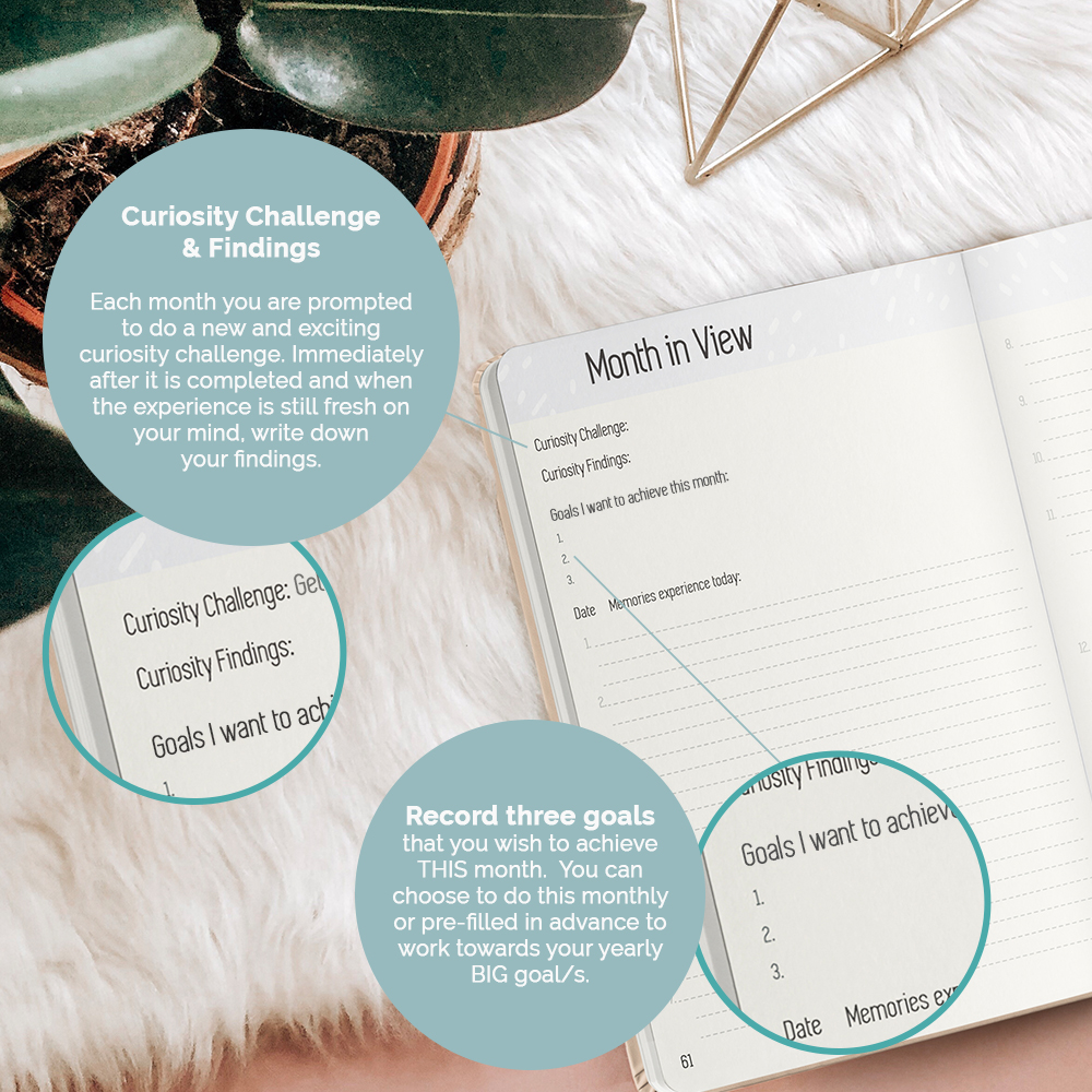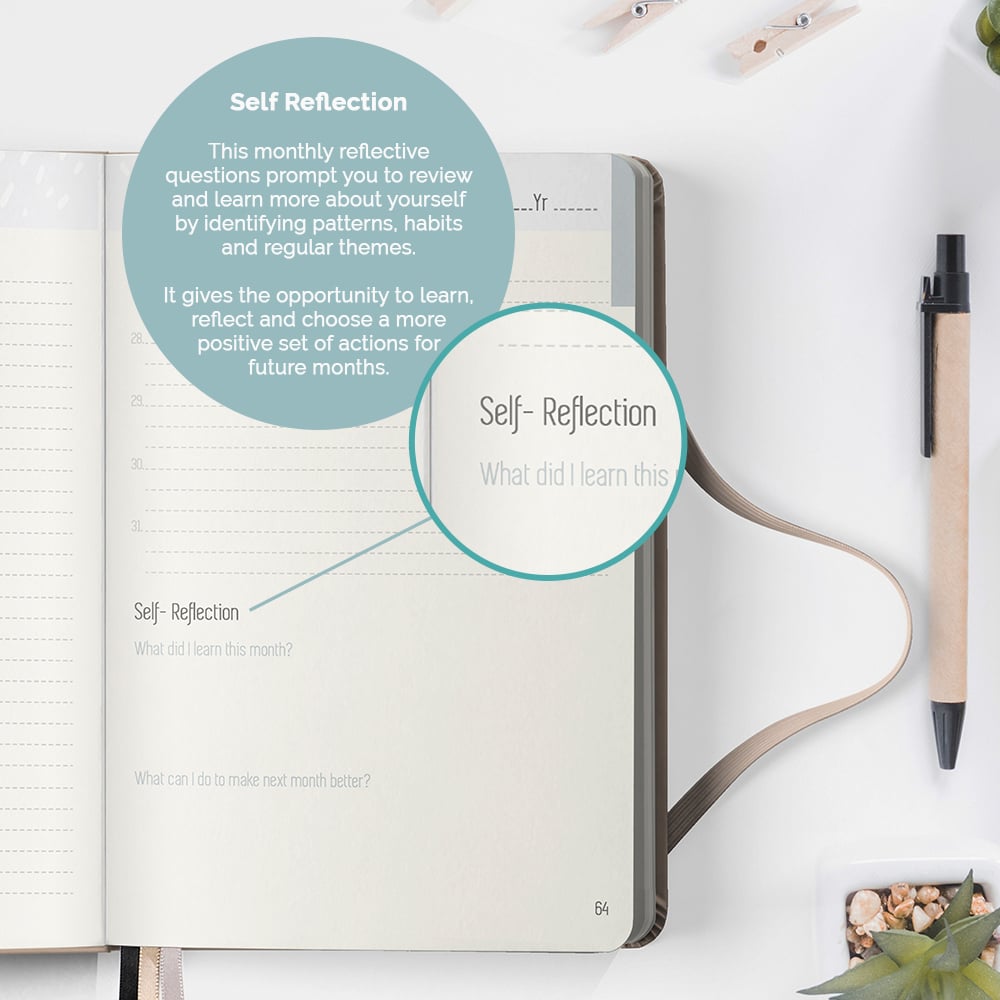The Timeless Journal prompts you to review and reflect at end of each month. It creates the opportunity to learn, reflect and choose a more positive set of actions for future months.